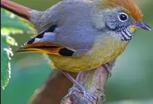 火尾希鹛,是画眉科、希鹛属的鸟类。 火尾希鹛为小型鸟类,体长12-15cm。头黑色,具长而宽阔的白色眉纹,在黑色的头部极为醒目。上体栗色或灰橄榄褐色,下体淡黄白色,尾黑色,外翈羽缘赤红色具白…全部>>