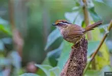褐脸雀鹛是雀眉科、雀鹛属型鸟类,体长15-17厘米。头顶褐灰色具黑色侧冠纹,头侧皮黄褐色。上体和两翅表面橄榄褐色,尾褐色。下体浅茶黄色。虹膜灰色或褐色,嘴蓝灰色;嘴峰黑色,下嘴灰色,脚淡灰色。…全部>>