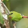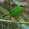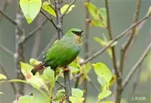 火尾绿鹛是莺科、绿鹛属小型鸟类,体长11-14厘米。上体绿色,头顶至枕具黑色鳞状斑,眼先和眼后黑色,眉纹黄绿色。两翅黑色具黄色和红色翅斑及白色端斑,极为醒目。中央一对尾羽绿色,外侧尾羽鲜红色。…全部>>
