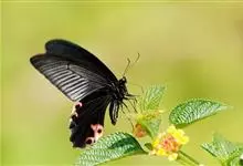 绿带翠凤蝶,又名深山凤蝶,为凤蝶科凤蝶属下的一种。分布于韩国、日本、中国台湾、中国大陆等地。翅黑色,满布金绿色鳞片。前翅亚缘具黄绿色横带纹。后翅外缘有6个略呈新月形的红斑,…全部>>