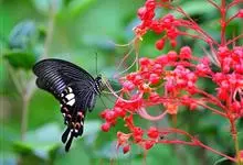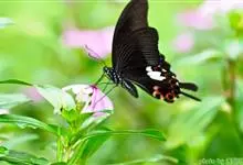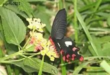 玉斑凤蝶Papilio helenus 别名白纹凤蝶,是凤蝶科凤蝶属美凤蝶亚属大型种类。雌雄同型;体翅皆黑色,后翅正面中室外有3个并列的白色斑,亚外缘有1列模糊的新月形红色斑,…全部>>