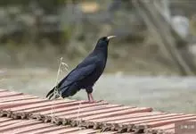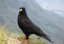 红嘴山鸦,是脊索动物门鸟纲雀形目鸦科鸟类。红嘴山鸦的成鸟通体羽毛纯黑色具有蓝色金属光泽,翼和尾泛有蓝绿色金属光泽;虹膜暗褐色,喙较为尖细,并且呈镰状下弯,喙和脚朱红色。…全部>>