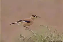 黑尾地鸦:体羽沙褐色,额、头顶以至后颈呈发金属紫蓝辉的黑色。头侧乳黄色。整个背面,包括两肩葡萄褐色。翅的中、小覆羽与背同色,最外侧的小翼羽白色;大覆羽呈发紫蓝色光辉的黑色;初级飞羽白色,…全部>>