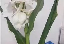 姜花又名野姜花。是姜科姜花属的多年生草本植物,茎高1-2米;叶片长圆状披针形或披针形,叶面光滑,叶背被短柔毛;穗状花序顶生,椭圆形,花芬芳,白色;蒴果卵状三棱形,微黄绿色;种子鲜红色,具橘红色的假种皮。…全部>>