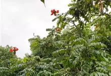 火焰树是紫葳科、火焰树属乔木,树皮平滑,灰褐色。奇数羽状复叶,对生,连叶柄长达45厘米;小叶13-17枚,叶片椭圆形至倒卵形,伞房状总状花序,顶生,密集;被褐色微柔毛,具有明显的皮孔;花冠一侧膨大,…全部>>