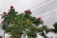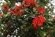 火焰木,又名苞萼木、喷泉树,为紫葳科常绿大乔木,株高10—20米,叶为奇数羽状复叶,对生,较大,斜椭圆形,全缘,纸质,叶面深绿色。 全部>>