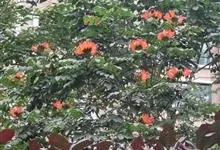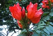 火焰木,又名苞萼木、喷泉树,为紫葳科常绿大乔木,株高10—20米,叶为奇数羽状复叶,对生,较大,斜椭圆形,全缘,纸质,叶面深绿色。 全部>>