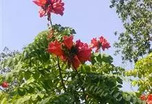 火焰树是紫葳科、火焰树属乔木,树皮平滑,灰褐色。奇数羽状复叶,对生,连叶柄长达45厘米;小叶13-17枚,叶片椭圆形至倒卵形,伞房状总状花序,顶生,密集;被褐色微柔毛,具有明显的皮孔;花冠一侧膨大,…全部>>