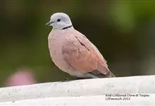 火斑鸠,是鸽形目鸠鸽科斑鸠属的鸟类动物。火斑鸠全长约21-24厘米,雄鸟头顶和后颈蓝灰,颏和上喉蓝白,后颈基有1道明显而狭窄的黑色半领圈;背、肩、翅上覆羽及下体均葡萄红,但下体色略浅,…全部>>