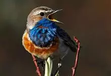 蓝点颏亦称“蓝喉歌鸲”,通称蓝靛颏儿。身体大小和麻雀相似,体长12-13厘米,体重17-18克。头部、上体主要为土褐色。眉纹白色。尾羽黑褐色,基部栗红色。颏部、喉部辉蓝色,下面有黑色横纹。下体白色。…全部>>