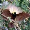 大极乐鸟是极乐鸟属中最大的鸟种。成年雄鸟体长可达到43厘米,雌性可达35厘米。雄鸟的额、颊、喉等墨绿色;头、颈黄色;上体暗赤栗色;腹部葡萄红色,胁部有长饰羽,其基部橙黄,中部黄色,…全部>>