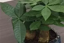瓜栗 Walp. ),俗称发财树,木棉科小乔木,高4-5米,树冠较松散,幼枝栗褐色,无毛。小叶具短柄或近无柄。花单生枝顶叶腋;花梗粗壮,被黄色星状茸毛,脱落;萼杯状,近革质;花瓣淡黄绿色,狭披针形…全部>>
