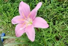 小韭兰学名韭菜莲又名风雨花、菖蒲莲、红玉帘和旱水仙,多年生草本,鳞茎卵球形,基生叶常数枚簇生,线形,扁平,花单生于花茎顶端,下有佛焰苞状总苞,花玫瑰红色或粉红色,蒴果近球形,种子黑色,花期夏秋。韭莲…全部>>