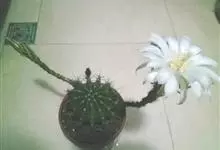 仙人球花 仙人掌科,仙人球属。植株单生或成丛。幼株球形,老株长成圆筒状,高可达75厘米,直径12-15厘米。球体暗绿色,具棱11-12。刺锥状,黑色,长1-1.5厘米。花着生于球体侧方,大型嗽喇叭状…全部>>