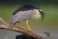 夜鹭是中型涉禽,体长46-60厘米。体较粗胖,颈较短;嘴尖细,微向下曲,黑色;胫裸出部分较少,脚和趾黄色;头顶至背黑绿色而具金属光泽;上体余部灰色;下体白色;枕部披有2-3枚长带状白色饰羽,下垂至背上,…全部>>