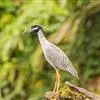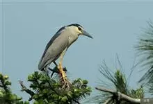 夜鹭是中型涉禽,体长46-60厘米。体较粗胖,颈较短;嘴尖细,微向下曲,黑色;胫裸出部分较少,脚和趾黄色;头顶至背黑绿色而具金属光泽;上体余部灰色;下体白色;枕部披有2-3枚长带状白色饰羽,下垂至背上,…全部>>