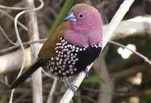 红梅花雀小型鸟类,体长9-10厘米。雄鸟通体朱红色,背、肩、胸等满布白色小斑点,两翅和尾黑褐色均具白色端斑,嘴红色,脚蜡黄色。雌鸟上体淡褐色或赭褐色,翅上中覆羽、大覆羽和内侧飞羽末端具白色斑点,…全部>>