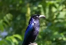 黑卷尾是雀形目卷尾科一属,又称铁练甲、铁燕子、铁林哥、羊蹄刺、榨油郎,体长约30厘米全身蓝黑色而具金属光泽,尾长且分叉较深。幼鸟似成鸟,金属光泽弱,下腹部具近白色的横纹。虹膜暗红色,嘴黑色,脚黑色。…全部>>