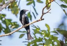 发冠卷尾是中型鸟类,体长28-35厘米。通体绒黑色缀蓝绿色金属光泽,额部具发丝状羽冠,外侧尾羽末端向上卷曲。栖息于海拔1500米以下的低山丘陵和山脚沟谷地带,多在常绿阔叶林、次生林或人工松林中活动。…全部>>