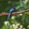 发冠卷尾是中型鸟类,体长28-35厘米。通体绒黑色缀蓝绿色金属光泽,额部具发丝状羽冠,外侧尾羽末端向上卷曲。栖息于海拔1500米以下的低山丘陵和山脚沟谷地带,多在常绿阔叶林、次生林或人工松林中活动。…全部>>