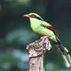 蓝绿鹊:中型鸟类,共有5个亚种。体长36-38厘米。尾长,嘴、脚红色。通体羽色主要为草绿色,宽阔的黑色贯眼纹向后延伸到后颈,在绿色的头侧极为醒目。两翅栗红色,内侧飞羽具黑色次端斑和白色尖端。尾绿色,…全部>>