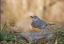 白眉鸫,是脊索动物门鸟纲雀形目鸫科鸫属中等体型的灰褐色鸫类。雄鸟头、颈、顺部至上颈灰色,具白色眉纹和下眼圈,眼先深色,上背至尾上覆羽橄榄褐色,上胸和两胁栗褐色,下胸、腹部和尾下覆羽白色,…全部>>