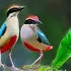 绿胸八色鸫:是雀形目八色鸫科的鸟类,共有12个亚种。体长为16-18厘米,体重65-69克。体型圆胖,尾短,腿长。头黑,上体绿色,两翼深色而具白色斑纹,头顶至后枕深褐,胸及腹部苹果绿,臀亮红。…全部>>
