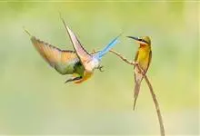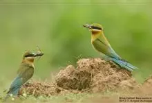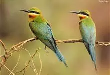 蓝颊蜂虎:是蜂虎科、蜂虎属的鸟类,共有2个亚种。体长27-33厘米,翼展46-49厘米,体重38-50克。嘴形细长而下弯,先端尖,…全部>>