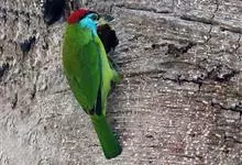 金喉拟啄木鸟,是须鴷科、拟啄木鸟属的鸟类。金喉拟啄木鸟为小型鸟类,体长19-24厘米。额深红色,头顶金黄色,后枕具一大块深红色斑,耳羽和头侧银灰色,上体草绿色,颏和上喉金黄色,下喉淡银灰色,…全部>>