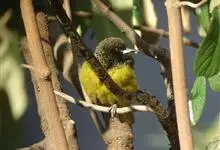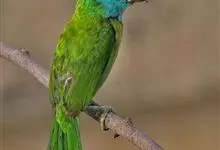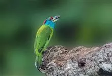 绿拟啄木鸟为鴷形目,须科,拟啄木属的一种。形较大拟啄木鸟略小,体长约260mm。头、颈及胸浅褐而具淡黄白色条纹;喉几为淡黄白色;身体余部草绿色。虹膜棕褐色,眼周裸露部黄色;嘴峰角黄色;跗跖和趾角黄…全部>>