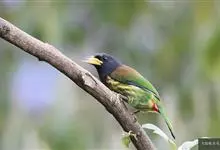 黑眉拟啄木鸟,为须䴕科、拟啄木鸟属的小型鸟类,体长20-25厘米,外形和金喉拟啄木鸟非常相似,但具粗著的黑色眉纹,头侧和耳覆羽以及下喉蓝色而不为银灰色,前颈两侧各有一块鲜红色斑。全部>>