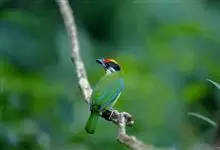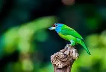 蓝喉拟啄木鸟,是须鴷科、拟啄木鸟属的鸟类。蓝喉拟啄木鸟为小型鸟类,体长20-23厘米。前额至头顶鲜红色,其上有一宽阔的黑色横带,将此红色分为前后二块;头侧、颏、喉蓝色,下喉两侧各具一红色点斑。…全部>>
