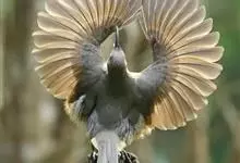 琴鸟,是雀形目琴鸟科琴鸟属底栖型鸟类。体型较大,通体浅褐色;雄鸟有长达70厘米,宽3.5厘米的竖琴形美丽尾羽,最外侧的尾羽先端外卷成弧形,上缀金褐色冠状斑;边缘黑色,…全部>>