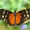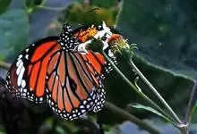 黑脉金斑蝶:翅阔8.6-12.4厘米。雄蝶较雌蝶为大。成年蝶颜色鲜艳,翅膀上有显眼的橙色及黑色斑纹,周围是宽阔的黑色边框,布有许多白色斑点。这种引人注目的着色是对捕食者的视觉警告,表示这个物种有毒;…全部>>