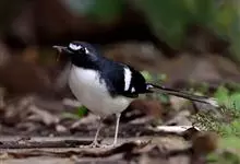 小燕尾鸫科燕尾属的一种鸟类,体长13厘米,尾短,与黑背燕尾色彩相似但尾短而叉浅。其前额白色,翼上白色条带延至下部,且尾开叉,嘴直而壮,嘴须发达;第1枚初级飞羽大约为第2枚初级飞羽长度的一半;尾比翅长,…全部>>