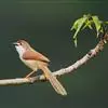 棕头雀鹛为鸦雀科,褐鹛属小型鸟类,体长10-13厘米。头顶栗褐色具黑色侧冠纹。上体茶黄色,飞羽外侧表面灰白色,内侧表面红棕色,内外二色之间夹有黑色。颏、喉白色具不明显的暗色纵纹,胸沾葡萄灰色,…全部>>