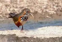 长嘴钩嘴鹛是画眉科、钩嘴鹛属中型鸟类,体长24-27厘米。嘴粗壮、长而尖且向下弯曲。上体橄榄褐色或橄榄棕褐色,颊和耳羽灰褐色,其后有一栗红色斑,耳羽上面从眼后开始有一长的白色纵纹沿颈侧向下。下体白色,…全部>>