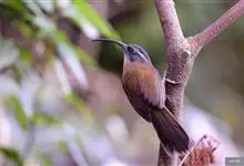 剑嘴鹛:中型鸟类,体长21-22厘米。嘴特别细长而向下弯曲,头顶和头侧烟灰色具长而窄的白色眉纹,在暗色的头上极为醒目,其余上体棕褐色或褐色。颏、喉白色杂有灰色条纹,其余下体锈红色。…全部>>