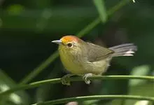 金头穗鹛小型鸟类,体长10~11厘米,是一种黄色小鸟。头顶金黄色有黑色纵纹,眼先黑色,在头、颊和耳羽金黄色的衬托下亦甚醒目。上体橄榄黄色,下体亮黄色,腹和两胁沾绿。…全部>>