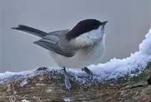 沼泽山雀是山雀科山雀属的鸟类。体长10-13厘米,体重10-14克。成鸟头顶至后颈为富有金属光泽的黑色,…全部>>