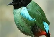 绿胸八色鸫:是雀形目八色鸫科的鸟类,共有12个亚种。体长为16-18厘米,体重65-69克。体型圆胖,尾短,腿长。头黑,上体绿色,两翼深色而具白色斑纹,头顶至后枕深褐,胸及腹部苹果绿,臀亮红。…全部>>