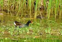 黑水鸡:是鹤形目、秧鸡科的鸟类,共有12个亚种。中型涉禽,体长24-35厘米。嘴长度适中,鼻孔狭长;头具额甲,后缘圆钝;嘴和额甲色彩鲜艳。翅圆形,第2枚初级飞羽最长,或第2枚和第3枚初级飞羽等长,…全部>>