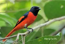 灰喉山椒鸟:共有8个亚种。体长18-22厘米。雄鸟头部和背亮黑色,腰、尾上覆羽和下体朱红色,翅黑色具一大一小的两道朱红色翼斑。中央尾羽黑色,外侧尾羽基部黑色,端部红色。…全部>>