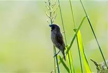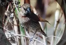 栗腹文鸟:小型鸟类,体长10-12厘米。嘴蓝灰色,基部粗厚,先端尖、呈圆锥状, 脚亦为蓝灰色,整个头、颈和上胸黑色,其余体羽栗色,或下胸和腹中央至尾下覆羽黑色。尾栗红色。全部>>