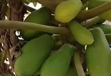 番木瓜,番木瓜科番木瓜属的常绿软木质小乔木,高达10米,具有乳汁;茎不分枝或有时于损伤处分枝;叶大且聚生于茎顶,近似盾形,叶柄中空;花单性或两性,有些品种雄株偶尔生两性花或雌花,…全部>>