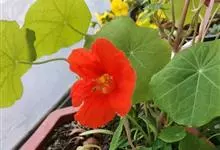 旱金莲是旱金莲科旱金莲属蔓生一年生草本植物。叶互生,叶柄向上扭曲,盾状,叶圆形,具波状浅缺刻,下面疏被毛或有乳点;花黄、紫、桔红或杂色,花托杯状,花瓣为圆形,边缘具缺刻;果实为扁球形;花果期6-10月,…全部>>