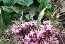 重瓣臭茉莉 Mabb.)是唇形科大青属植物 。枝柔毛,叶形近心形,先端渐尖,基部平截,浅心形,上面糙毛,下面被柔毛,叶柄密被柔毛;花房状聚伞花序顶生,苞片披针形,花冠红、淡红或白色,有香味,…全部>>
