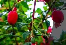 倒挂金钟是柳叶菜科倒挂金钟属亚灌木植物。茎直立,多分枝;幼枝带红色,被短柔毛与腺毛,老时渐无毛;叶对生,卵形或窄卵形,脉常带红色;常带红色,被短柔毛与腺毛;花筒红色,筒状钟形,…全部>>