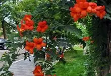 凌霄 Schum.),别名上树龙、五爪龙、九龙下海等,为紫葳科凌霄属的攀援藤本植物。其茎木质,以气生根攀附于它物之上。叶对生,为奇数羽状复叶;小叶卵形至卵状披针形,边缘有粗锯齿;顶生疏散的短圆锥花序,…全部>>