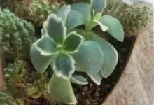 唐印为景天科伽蓝菜属的多年生肉质草本植物。植株中型,株高50厘米,宽20厘米,多分枝;叶片肉质,对生,卵形,全缘,先端钝圆,叶片淡绿色至灰绿色,表面被有厚厚的白粉,光照充足时,叶缘呈红色;圆锥花序,…全部>>